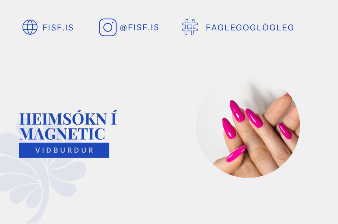 Þann 23. Maí 2023 bauð Magnetic naglaskólinn í Hafnarfirði FÍSF í heimsókn til sín. Tekið var virkilega vel á móti okkur, léttar veitingar og gjafapokar. Vöruúrval magnetic var kynnt, fræddumst um mun á hinum ýmsu gelum og gellökkum og hvernig er hægt að tvinna þetta saman. Farið var yfir allt frá þjölum yfir í bora og allt þar á milli. Einnig fengum við að sjá gellökkun og lagfæringu á skemmdri nögl. Félagsmönnum gafst tækifæri á að versla vörur frá Magnetic á afslætti i lok fræðslunnar. Það var fámennt en góðmennt og virkilega fræðandi örnámskeið og góð upprifjun.Maður lærir alltaf eitthvað nýtt og hittir skemmtilegt og faglegt fólk.