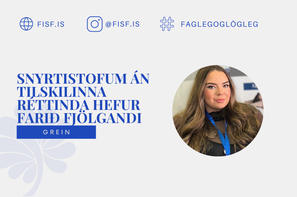 „Við fáum töluvert af ábendingum, bæði frá faglærðu fólki og almennum neytendum. Við tökum því opnum örmum og gerum okkar besta til þess að koma því í réttan farveg,“ segir Rebekka Einarsdóttir, formaður Félags íslenskra snyrtifræðinga, FÍS, í frétt Veroniku Steinunnar Magnúsdóttur í Morgunblaðinu um að snyrtistofum án tilskilinna réttinda hafi farið fjölgandi á síðustu árum en snyrtifræði er lögvernduð iðngrein og því óheimilt að starfa í faginu án þess að hafa sveins- eða meistarapróf.